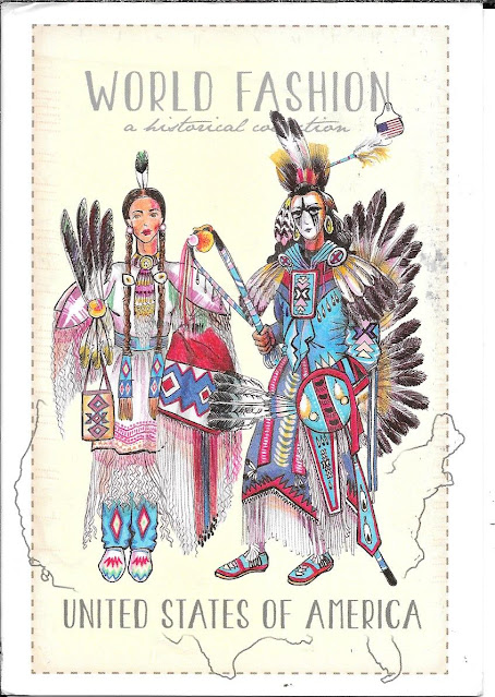 A lovely colourful card arrived yesterday.. What a surprise as it was posted 7 months ago ! There was a postal stamp. "Missent to Botswana " amazing !. Thank you fror this lovely card Arnold and am so happy that it has finally arrived after such a long and round about journey. . This is another card in the series of "World Fashion " and local and indigenous dress . This being native American.