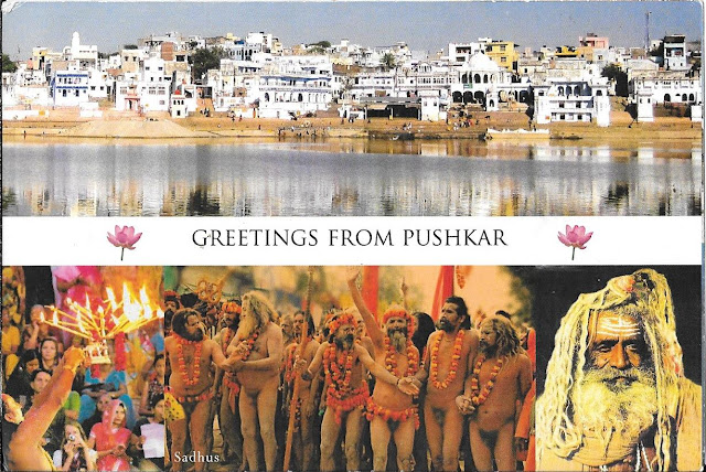 A lovely colourful card from a good frendin India.. and from a visit to Rajajsthan is this card showing The City of Pushkar and is the gathering place for the religious peoples called "Sandhus". India a most facinating place of so many varied peoples.. I would love to return again as there is so much to see and do in India. Thank you so much Poonam you send me wonderful cards.