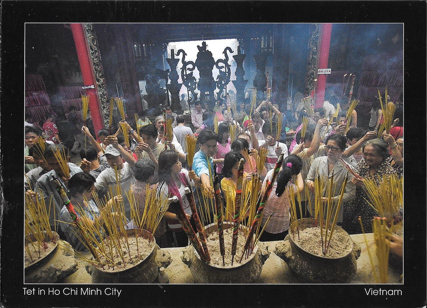Thank you once again Dearest Trang for another lovely card from Ho Chi Min City. This card is showing the Celebrations for Tet.. During the Vietnames New Year OR Tet as it is known to Vetnamese People Celebrate this event by visiting their Temples and preying for good fortune. This is a wonderful and thoughtful large stamp with Cancellation Thank you so much Trang.